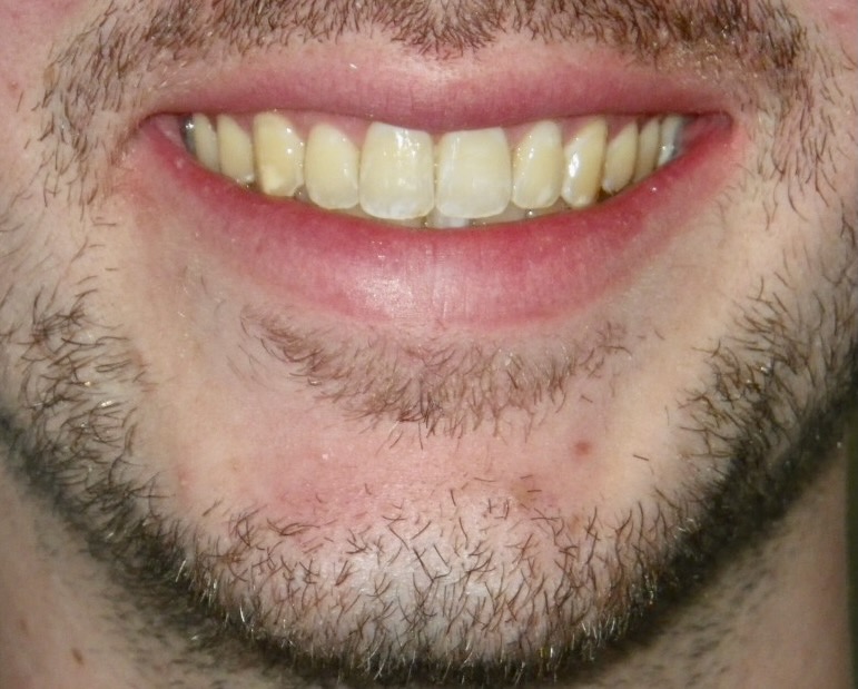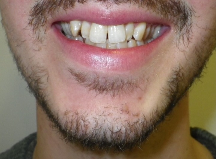 DC is a 21-year-old male who was treated with upper and lower fixed braces combined with surgical treatment to advance the lower jaw. The aim of the treatment was to reduce the protrusion of the upper front teeth and improve the appearance of the lower jaw. The total treatment time was 28 months.