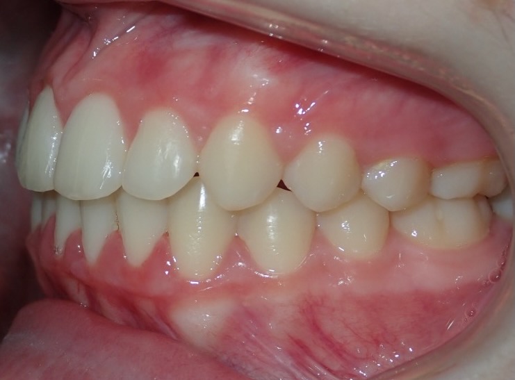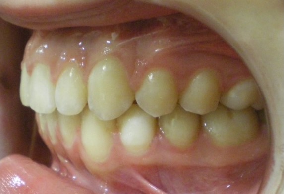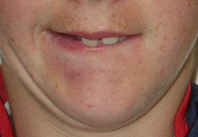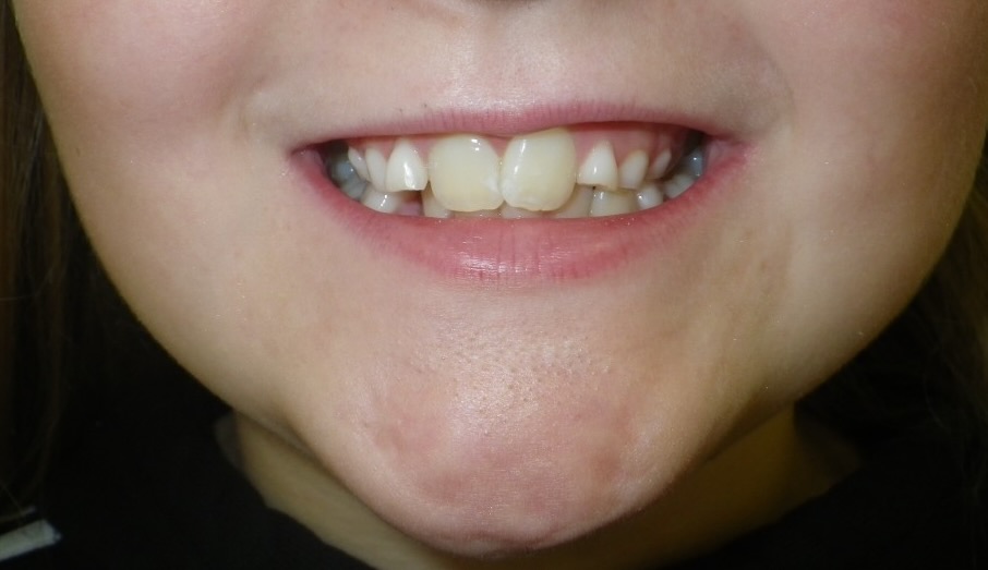 13-year-old girl who was treated non-extraction with a functional twin-block brace, followed by fixed braces over a total period of 24 months. This treatment corrected her retrusive chin and bite.