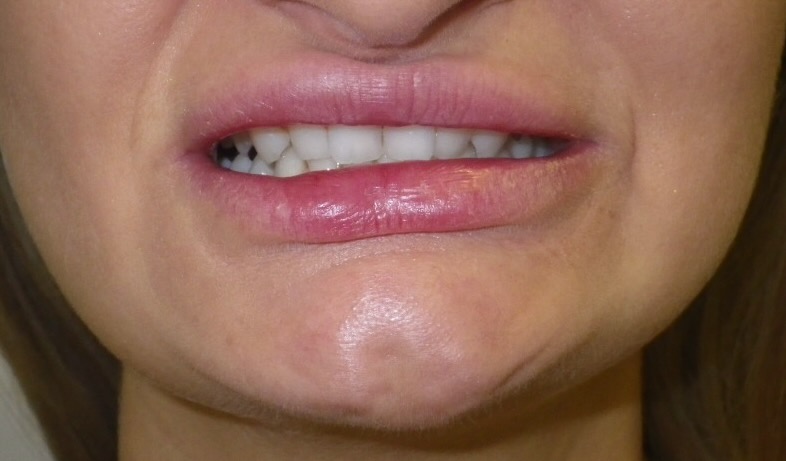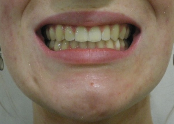 EP is a 32-year-old female who was treated with upper and lower fixed braces combined with surgery on the upper and lower jaws. The aim of the surgery was to increase the amount of tooth showing while smiling and to align an asymmetric lower jaw. The total treatment time was 29 months.