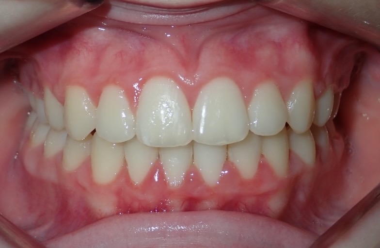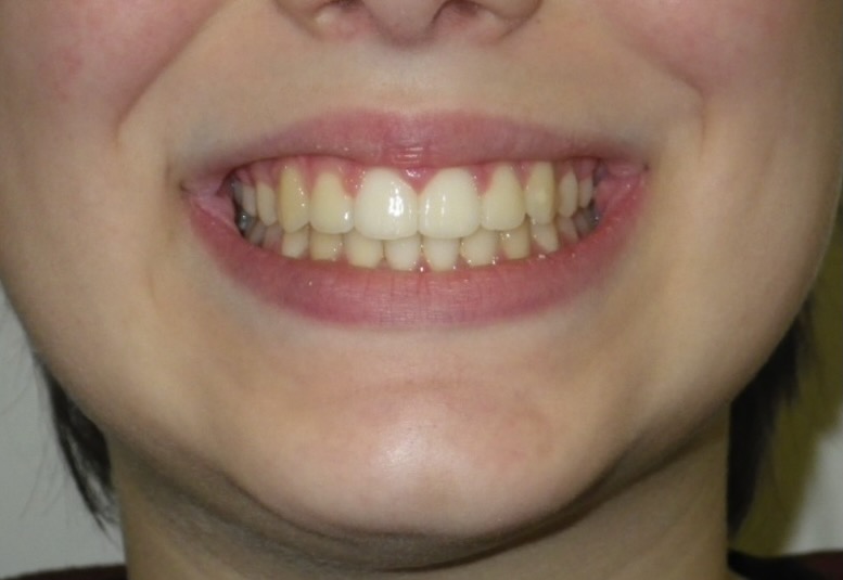12-year-old girl who was treated non-extraction with a functional twin-block brace, followed by full fixed upper and lower braces. This treatment corrected the protrusion of her upper teeth and aligned and straightened her impacted canines. The total treatment time was 26 months.